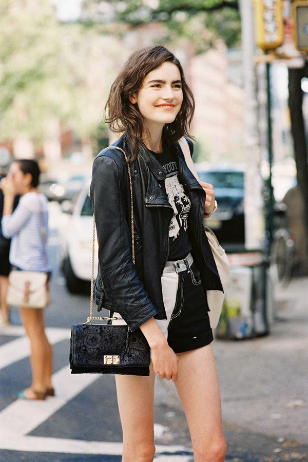Proenza Schouler leather biker jacket, 3.1 Phillip Lim sculpted leather jacket, Acne Studios shrunken leather moto jacket, Topshop collarless leather biker, or River Island crop leather look jacket