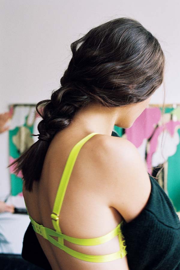 Rebecca Minkoff kaftan dress + Agent Provocateur neon bra + See by Chloe shorts