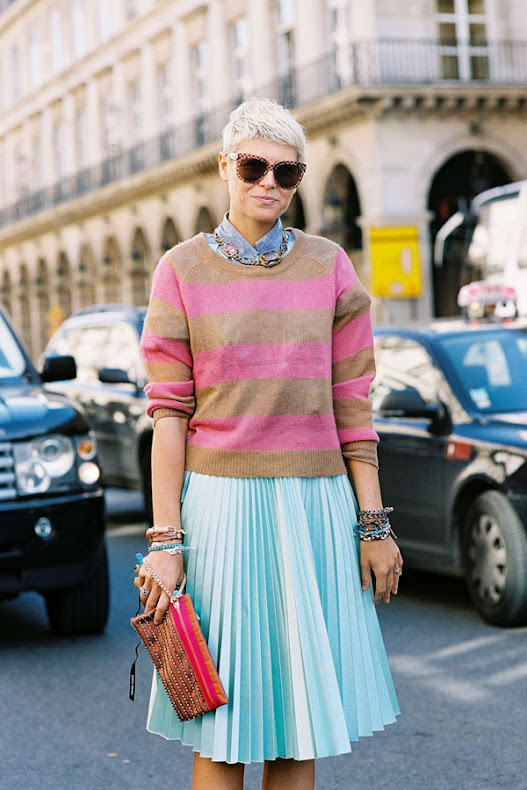 The colours of Elisa's beautiful outfit reminds me of a cone full of gelato on a summer's day in Italy. Such a lovely, fresh, happy colour combination....as always.
