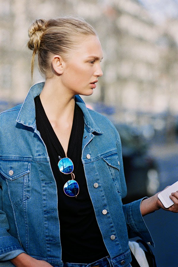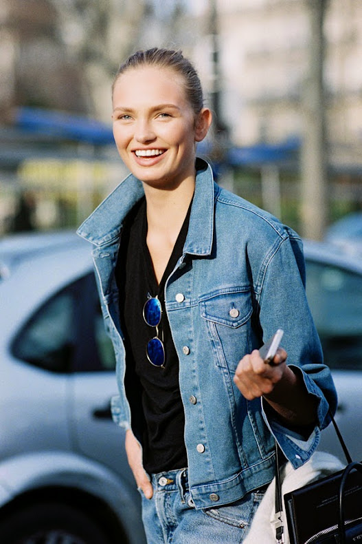 Taking it back to the 80's: double-denim and white sneakers.