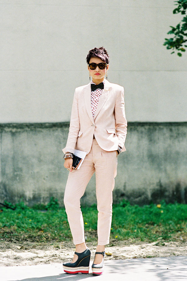 Suiting: A.L.C. Moranto blazer + A.L.C. Carter pants, Paul & Joe Caraluci neon jacquard blazer + Paul & Joe pants, Vanessa Bruno grosgrain trimmed jacket + grosgrain trimmed pants, A.L.C. Toland jacket + A.L.C. Carter pants, or Stella McCartney Iris blazer + pants