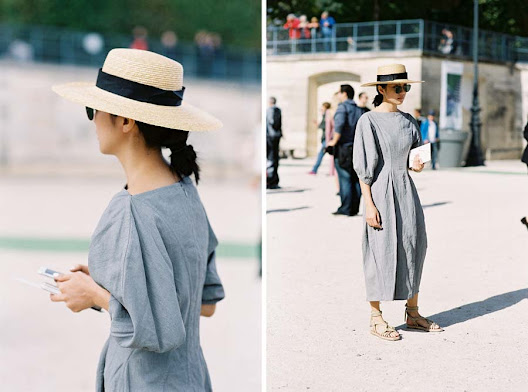 The beauty of simplicity for summer: Straw boater, neutral gladiator sandals, and a stand-out puff sleeve dress. Love.