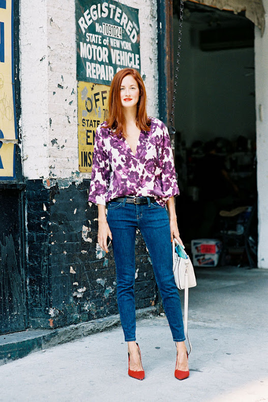 Print blouse: Mother of Pearl Keres printed shirt, Alice + Olivia Freya Flare back blouse, Marc by Marc Jacobs Tootsie printed shirt, Karl Lagerfeld Brigid printed blouse, Haute Hippie button down blouse, Equipment Daddy button down blouse, Topshop Summer floral boxy shirt (a slightly more cropped version than Taylor is wearing), ASOS shirt in vintage tattoo print or Stella McCartney Printed silk shirt