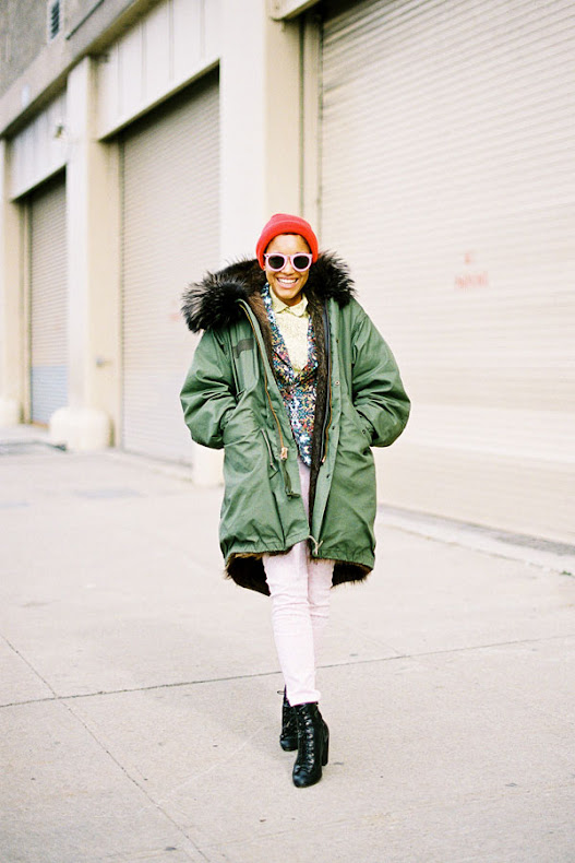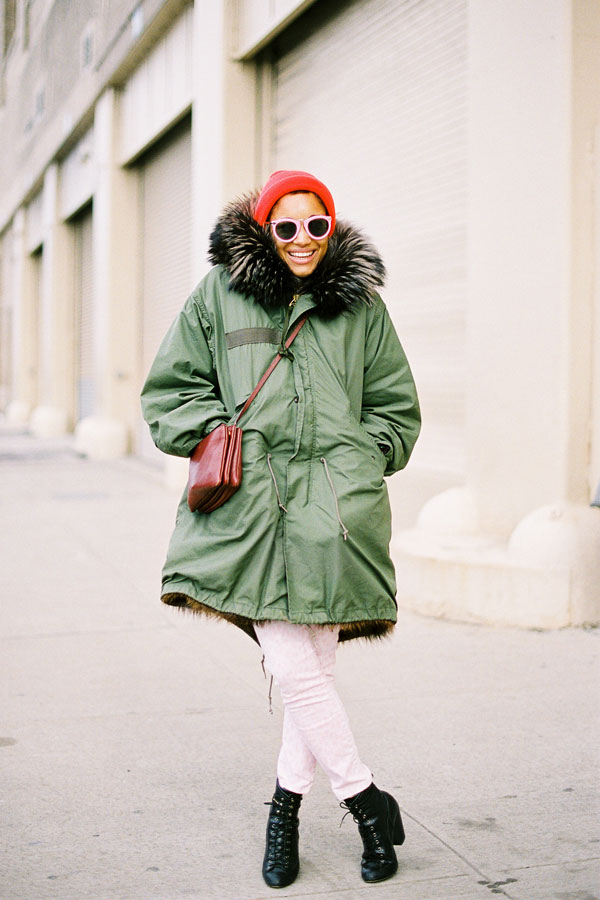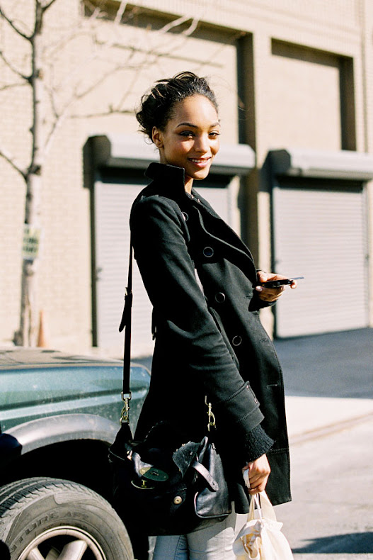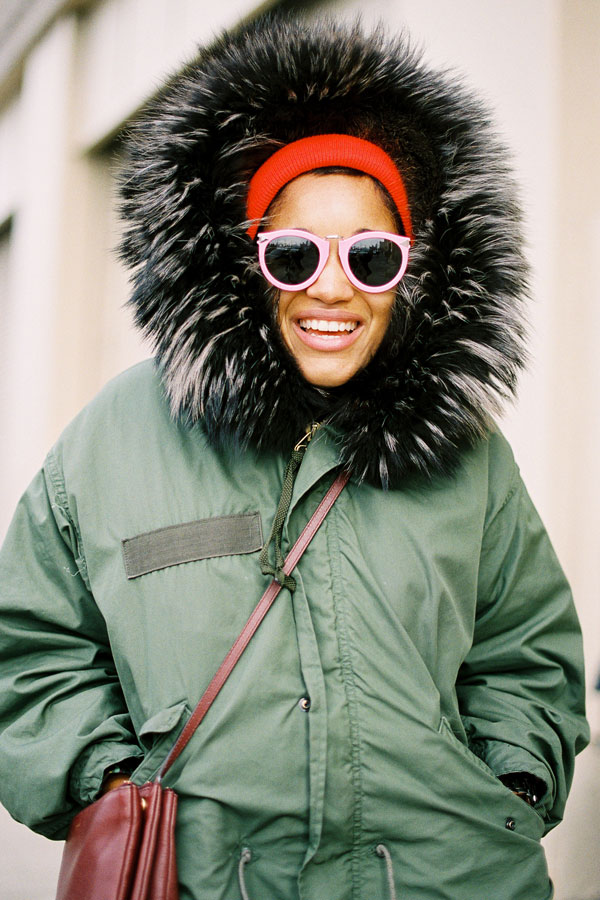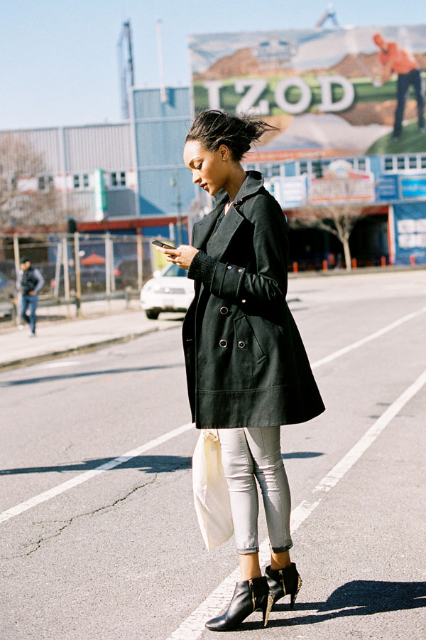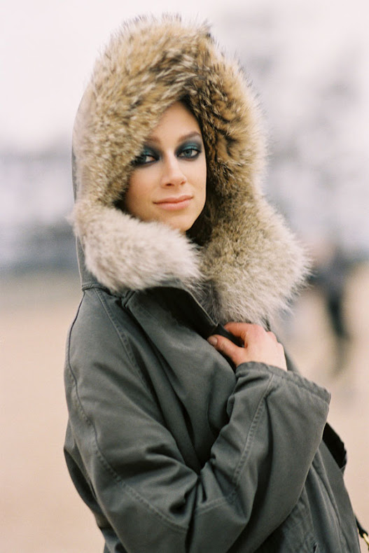 Two ways with furry boots and leather-trimmed black coats via the beautiful Doina and Caroline. Wear with jeans like Doina (Apres-ski anyone?) or team with leather trousers like Caroline.